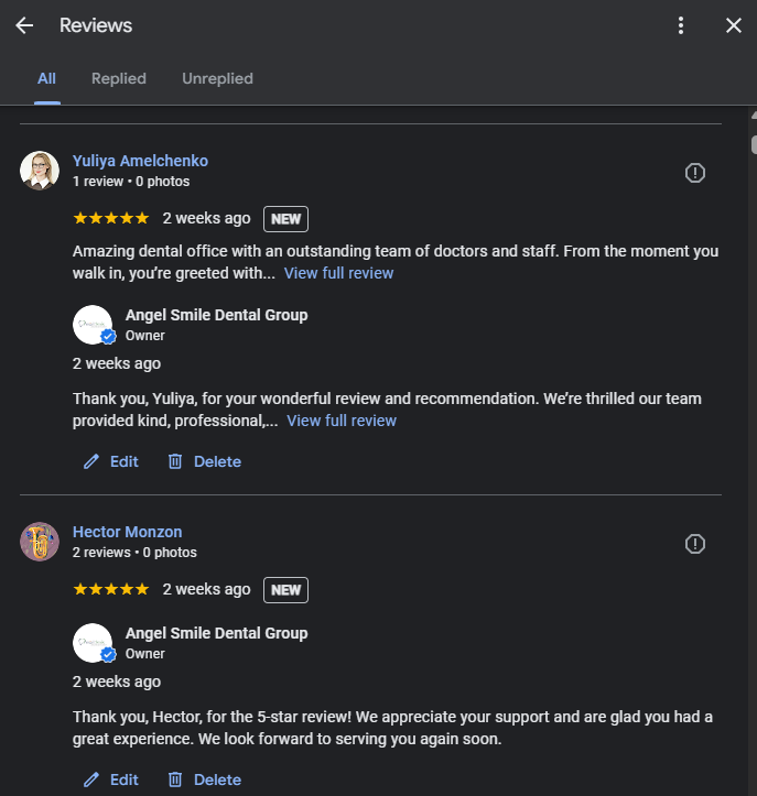 Answer every review. Within 24 hours, thank people for good reviews. Be professional when responding to bad reviews and offer to fix problems in private. Patient reviews, especially those that are recent and specific to a service, help both rankings and trust.
