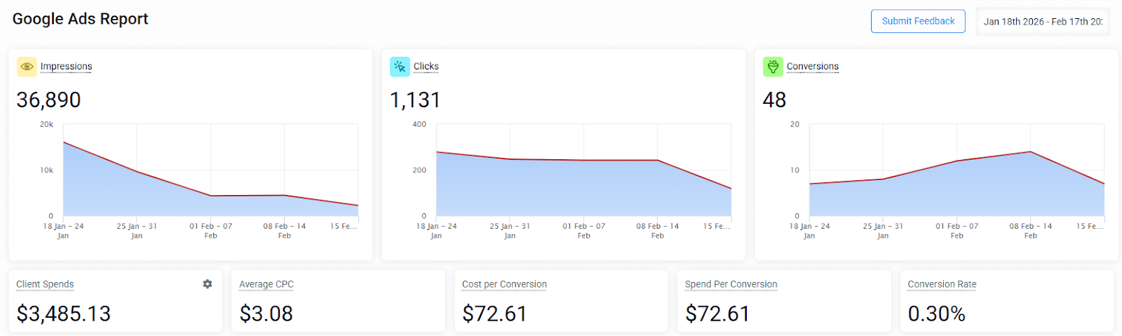 Set up conversion tracking in Google Analytics. Monitor these key metrics: